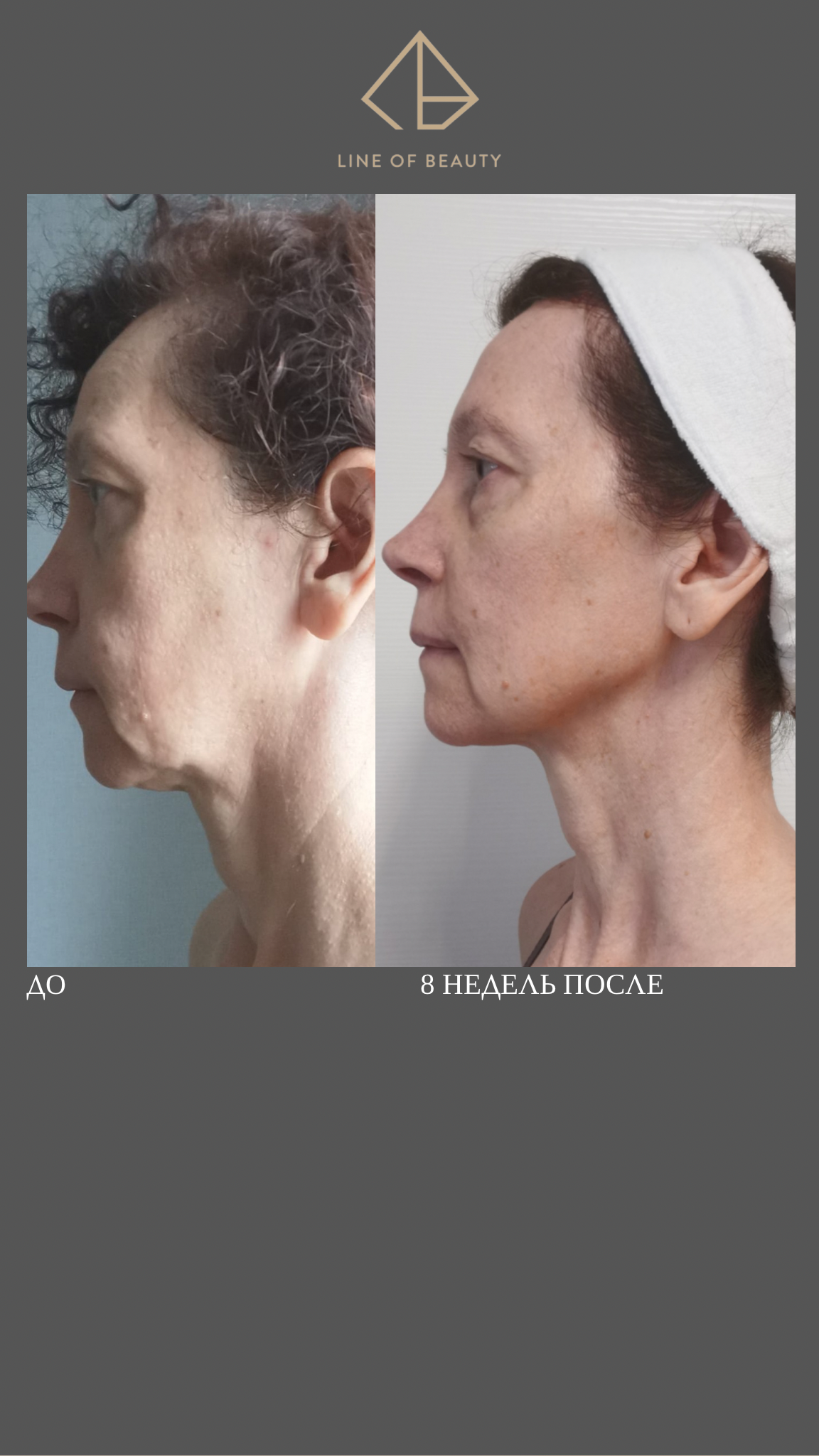 В этом кейсе модель — женщина старшего возраста, у которой усталый тип был выражен особенно ярко. Лицо выглядело утомлённым, с нарушенным тонусом, сероватым оттенком кожи, отёками и размытым овалом.